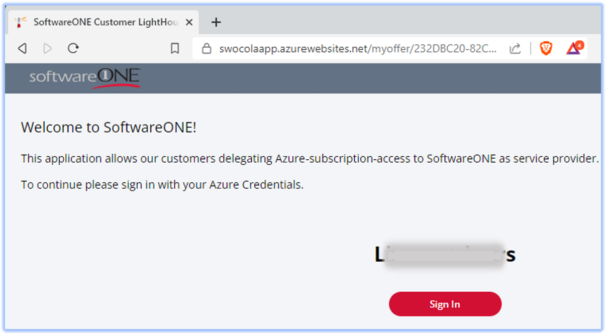 1 | Open the Azure Lighthouse Access invite link from SoftwareOne. Click on Sign In. ![]() |