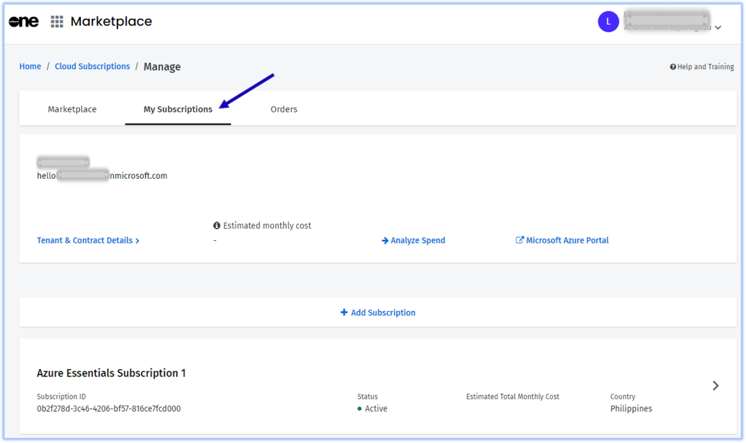 4 | Click on Marketplace, then click on Cloud subscriptions. ![]() |
