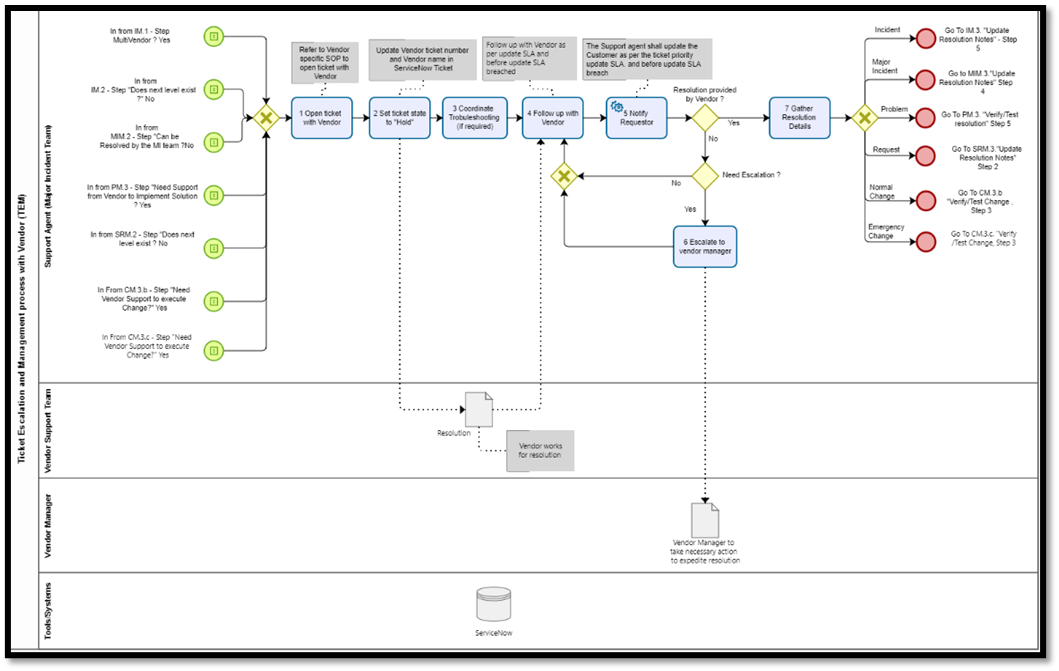 All vendor-escalated tickets shall be raised by following the standard operating procedure for the specific vendor.